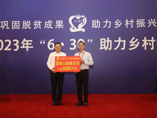 在本屆“廣東扶貧濟困日”活動上,國強公益基金會再捐5000萬元人民幣,繼續支持助力廣東及對口幫扶省份的鄉村振興工作。